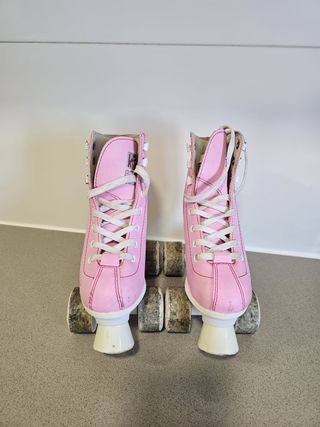 Estos patines de cuatro ruedas son perfectos para los más pequeños. Su diseño clásico y color rosa los hacen muy atractivos. Talla 32 - Color: Rosa - Tipo: Patines de cuatro ruedas - Cierre: Cordones