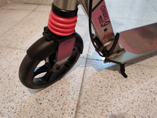 Vendo patinete Oxelo Mid 9 en color negro y rosa. Para niños de 9 a 14 años (entre 1,25-1,75m). - Manillar ajustable. - Freno en manillar. - Ruedas de 175 mm. - Plegable para fácil transporte. Esta en buenas condiciones, se ha usado pocas veces. Sólo tiene una pequeña rozadura en la maneta de freno (ver ultima foto).