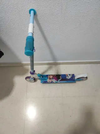 Patinete infantil con diseño de Elsa de Frozen, ideal para niños de 4 a 6 años. Perfecto para iniciarse en el patinaje. - Manillar ajustable. - Ruedas de color morado y azul. - Plataforma con estampado de los personajes de Frozen.