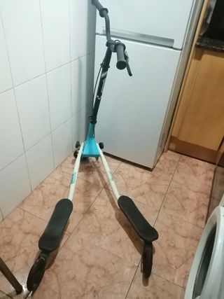 Patinete de adulto plegable con dos altutas de manillar (103 y 87 cms desde el suelo). No esta nuevo pero funciona bien ( incluido el freno trasero) Marca decathlon Oxelo