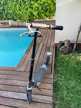 Patinete plegable de color negro. - Manillar con puños de goma. - Freno en la rueda trasera. - Plataforma antideslizante. - Para de cabra. Precio negociable