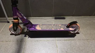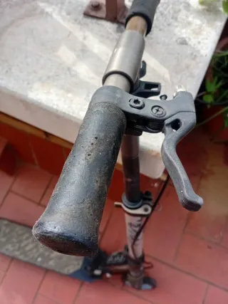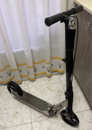 Patinete Oxelo con bastante uso, listo para usar, pero seria conveniente cambiar los puños del manillar. - Diseño plegable para facilitar su transporte. - Plataforma antideslizante para mayor seguridad. - Ruedas resistentes para un desplazamiento suave.