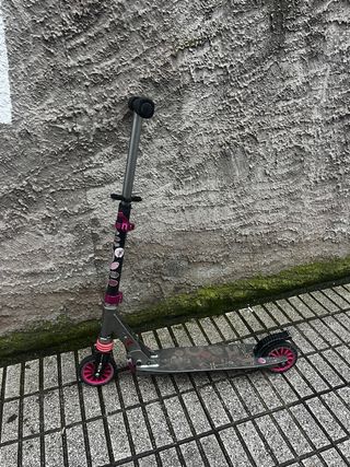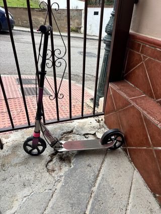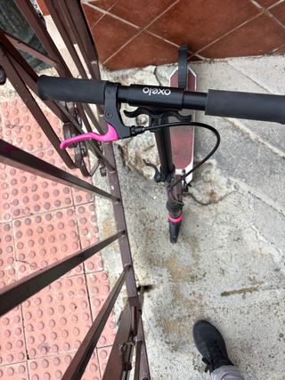 Patinete Oxelo en color rosa, en muy buen estado. - Marca: Oxelo - Color: Rosa - Modelo: Oxi9 Patinete Oxelo Mid 9 de Decathlon en muy buen estado. Se usó muy poco. Apto para niños, adolescentes y adultos de hasta 1,75 m, con altura regulable y estructura muy estable. Ideal para desplazamientos cortos por la ciudad (1–2 km) gracias a sus ruedas grandes, que absorben bien las vibraciones.Es plegable, ligero y fácil de transportar. Ruedas, freno y manillar en perfecto estado, sin holguras ni ruidos. Muy poco uso y siempre guardado en garaje. - Manillar ajustable en altura. - Freno en el manillar. - Ruedas de 230 mm. - Plegable