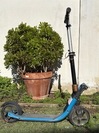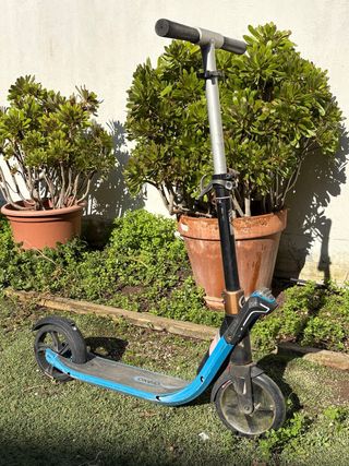 Patinete Oxelo en color azul y negro. Ideal para desplazamientos urbanos. - Ruedas de 200 mm. - Freno trasero. - Manillar ajustable en altura. - Plegable para facilitar su transporte. Precio negociable