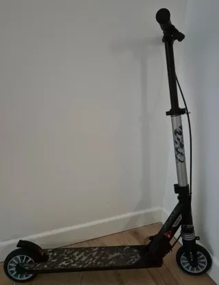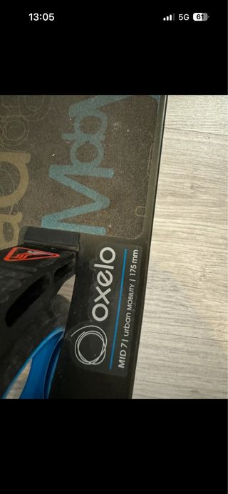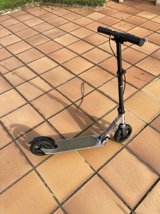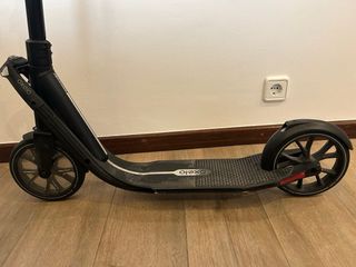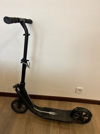 Patinete Oxelo Mid 9 de Decathlon en muy buen estado. Se usó muy poco. Apto para niños, adolescentes y adultos de hasta 1,75 m, con altura regulable y estructura muy estable. Ideal para desplazamientos cortos por la ciudad (1–2 km) gracias a sus ruedas grandes, que absorben bien las vibraciones.Es plegable, ligero y fácil de transportar. Ruedas, freno y manillar en perfecto estado, sin holguras ni ruidos. Muy poco uso y siempre guardado en garaje. - Manillar ajustable en altura. - Freno en el manillar. - Ruedas de 230 mm. - Plegable para facilitar su transporte.
