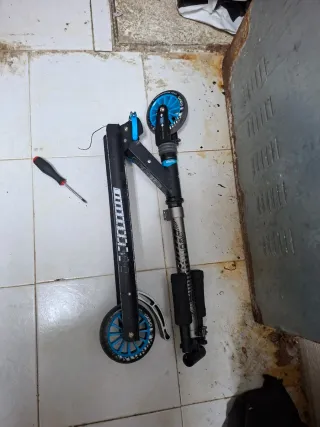 Patinete oxelo niños. Se puede pegar por completo Diferentes alturas mango Mucho uso, pero funciona.