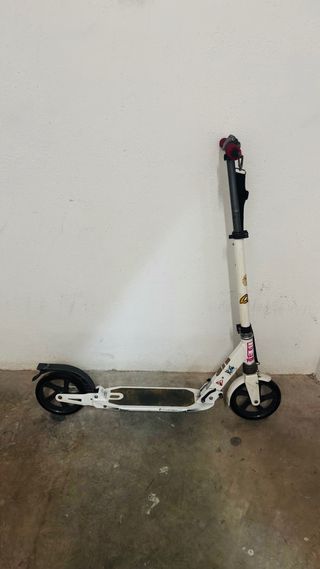 Patinete Oxelo en buen estado. Es de color blanco y se pliega fácilmente para guardarlo. - Marca: Oxelo - Color: Blanco - Plegable