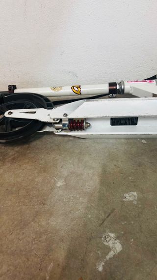 Patín manual en color blanco, con manillar y rueda delantera plegable, freno de presión en rueda trasera, perfecto estado de funcionamiento.... - Manillar ajustable en altura. - Puños de goma para un mejor agarre. - Plataforma antideslizante.