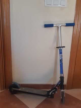 Vendo patinete Oxelo Mid 5 (modelo de Decathlon), ideal para niños a partir de 5 años. Robusto, ligero y con freno de maneta delantera, perfecto para paseos o ir al cole. ✅ Características: • Manillar ajustable en altura • Sistema de plegado fácil • Freno delantero con maneta • Ruedas y frenos en buen estado • Los puños de goma están algo gastados por el uso (ver fotos), pero no afecta al funcionamiento • Color azul con detalles en rojo.