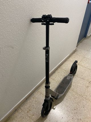 patinete marca Decathlon en buenas condiciones, aguanta hasta 100 kilos y tiene varias posiciones para graduar la altura. También es plegable y tiene para de cabra .Su precio original era de 70€ .