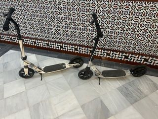 vendo 2 SCOOTER marca OXELO en buen estado. colores gris y blanco. son muy robustos, con freno de pie y de manillar, con amortiguacion. peso max 100kg.Los vendo por 50€ cada uno, 90€ los dos. Son plegables, facil de transportar.