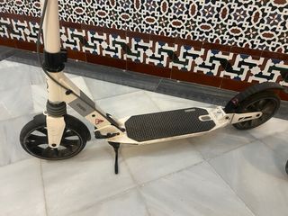 Está en buen estado Es un patinete plegable diseñado para adolescentes (de 1.25 a 1.75 m de altura y hasta 100 kg de peso). Cuenta con suspensión delantera para absorber las vibraciones y ruedas grandes de 175 mm para un deslizamiento suave. Dispone de un sistema de frenado con freno trasero y freno en el manillar para un mayor control de la velocidad. Es ideal para paseos por la ciudad y desplazamientos cortos, ofreciendo comodidad y diversión.