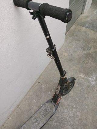 Patinete de estilo urbano, ideal para desplazamientos. Su diseño permite plegarlo para facilitar su transporte y almacenamiento. - Manillar ajustable en altura. - Ruedas de goma. - Freno en la rueda trasera.