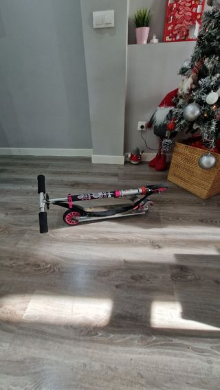 Patinete Oxelo en buen estado. Ideal para niños y niñas. - Color rosa y negro. - Diseño ligero y resistente. - Perfecto para desplazamientos cortos.