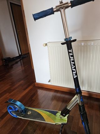Patinete plegable, funciona perfectamente, muy poco uso, de la marca Tijuana. - Puede llevarlo adultos y niños - Ruedas grandes para mayor comodidad. - Manillar ajustable en altura. - Sistema de frenado trasero. - Plegable para facilitar su transporte y almacenamiento. Comprado en el Corte ingles, precio 110€