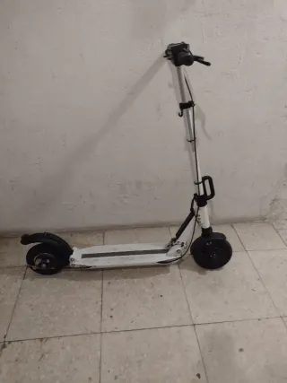 Patinete eléctrico Kugoo S1 Pro en color blanco. Ideal para desplazamientos urbanos. - pocos km - funciona perfecto - Diseño plegable para facilitar su transporte. - Rueda trasera de aire. Con freno manual (personalizado) - agarrador para mejor transporte (personalizado) - Manillar ajustable en altura.