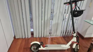 Patinete eléctrico Xiaomi en muy buen estado, ideal para desplazamientos urbanos. Se entrega con manual de instrucciones, manguito y aguja para hinchar la rueda de delante. Lo tengo muy bien cuidado y mimado. Lo he llavado con plásticos para que no se ensucie ni se estropee con la lluvia y el viento. - Color gris oscuro. - Diseño plegable para facilitar su transporte. - Ruedas de 8.5 pulgadas. La trasera maciza, no se rompe. - Freno trasero de disco. Precio negociable.