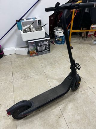 Patinete eléctrico Ninebot E2 Pro en color negro. -Cargador y candado incluido -‼️Tiene la rueda trasera pinchada ‼️ -Y el cristal de la luz trasera esta roto - Diseño plegable para facilitar su transporte. - Ruedas de 8 pulgadas.
