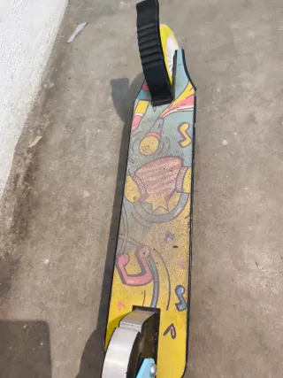 Patinete plegable con diseño moderno. - Plataforma con estampado camuflaje. - Ruedas de color gris claro. - Puños negros. - Manillar ajustable. -Como nuevo -Precio nuevo 64,90€