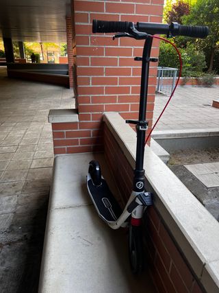 Patinete con ruedas grandes, ideal para desplazamientos. - Ruedas de gran tamaño. - Manillar ajustable. - Plegable para facilitar su transporte. Esta un poco sucio de estar en el trastero, pero esta nuevo rueda genial.