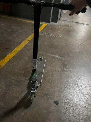 Patinete rígido de estilo libre en color negro con detalles en verde. - Manillar en forma de Y. - En perfecto estado.