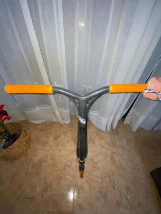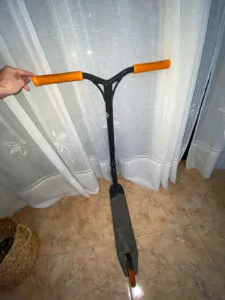 Patinete freestyle para trucos y acrobacias. - Manillar con puños de goma. - Plataforma ancha para mayor estabilidad. - Ruedas de alta resistencia. Solo esta un poco rallado y el tornillo de la rueda trasera cambiando pero por lo demás esta perfecto