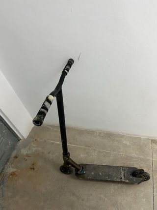 Vendo scooter custom por falta de uso. Está usado pero en muy buen estado mecánico, sin fisuras ni piezas dobladas. Muy ligero y resistente, ideal tanto para street como para park. Componentes: Manillar: Ethic Tenacity V2 (Acero 4130, solo 1 año de uso, impecable). Tabla: Ethic Vulcain (Compatible con ruedas de 12 std). Ruedas: Blunt 120mm (Giran perfectas). Dirección y Clamp: Blunt. El scooter va muy fino, sin ruidos raros (dialed). Se puede ver y probar sin compromiso. Hago envíos por Wallapop.