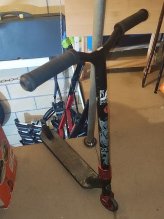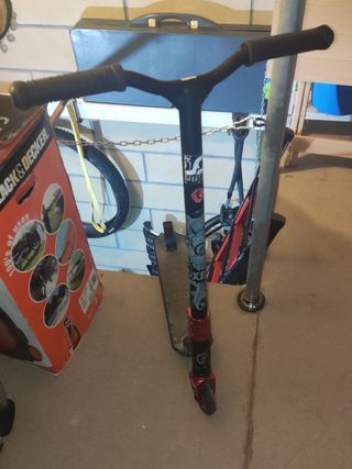 Quién será el más rápido en comprarlo?😉 Está usado, en mi opinión muy cómodo y muy buen patinete, el dibujo de la lija no se aprecia pero la lija sigue cumpliendo su función. Patinete de estilo libre, ideal para trucos y desplazamientos urbanos. - Manillar con puños de goma para un agarre firme. - Plataforma resistente para mayor durabilidad. - Ruedas diseñadas para un deslizamiento suave.