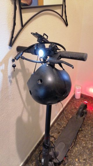 Se vende pack completo de patinete eléctrico Xiaomi por desuso. - Patinete eléctrico Xiaomi Mi Scooter 1S (2021) con poco uso. - Casco de protección de la marca Abus Hyban 2.0 con luces. - Soporte de móvil universal con rotación 360° de aluminio. - Bomba de aire para inflar las ruedas con adaptador para la rueda delantera. - Cargador original del patinete.
