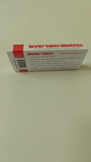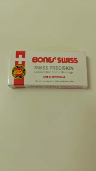 Rodamientos Bones Swiss para Patinete, Skate, Patines en Linea, Longboard, etc Set de 8 rodamientos Bones Swiss Competition con separadores. Rodamientos de alta gama que han demostrado ser extremadamente rápidos y duraderos. Caja de bolas de nylon de alta velocidad Protectores de goma extraíbles para una fácil limpieza y menor fricción pre-lubricados con lubricante de carreras Speed Cream - Máxima resistencia - Mínimo rozamiento MÁS EN MI PERFIL