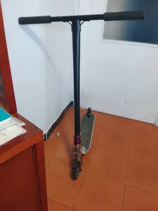 Vendo Scooter Freestyle montado a piezas, ideal para nivel iniciación y medio en Skatepark. Suena muy fino, cero holguras y está listo para usar. -Abrazadera (Clamp): Bestial Wolf de alta resistencia. -Rueda trasera: COMPLETAMENTE NUEVA, a estrenar. -Puños: Oxelo azules en muy buen estado. -Estado: La tabla tiene los roces típicos de grindar, pero nada que afecte a su uso. Ni una sola fisura.