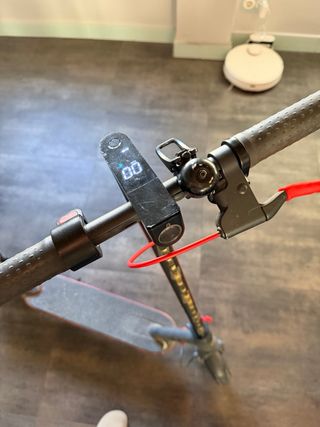 Vendo patinete eléctrico Xiaomi M365 (250W, alcanza 25 km/h). Funciona perfectamente de motor y batería. 🎁 INCLUYE EXTRAS: Cargador original, soporte para móvil y candado de seguridad rojo. Tiene instalado un cierre reforzado de aluminio rojo en el mástil y un tornillo pasante para reforzar el movimiento del manillar. Tiene marcas normales de uso por la ciudad y algunos rasguños superficiales, pero mecánicamente va genial y se pliega perfecto.