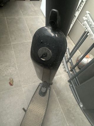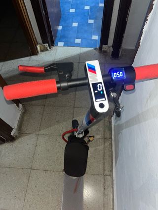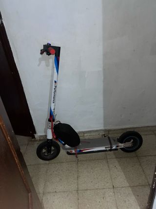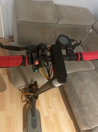Patinete eléctrico en color negro Con bastante uso. Funciona bien, pero estéticamente está como de se ve. La rueda trasera cambiada recientemente. Es muy similar al Xiaomi 365, el plegado y el cargador son iguales. No está trucado ni nada. Tiene la típica holgura de este tipo de patines, supongo que se podrá ajustar. En el manillar tengo puesto un agarre para la niña, se quita con 4 tornillos. Escucho ofertas que no sean ridículas. No envio.