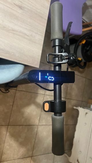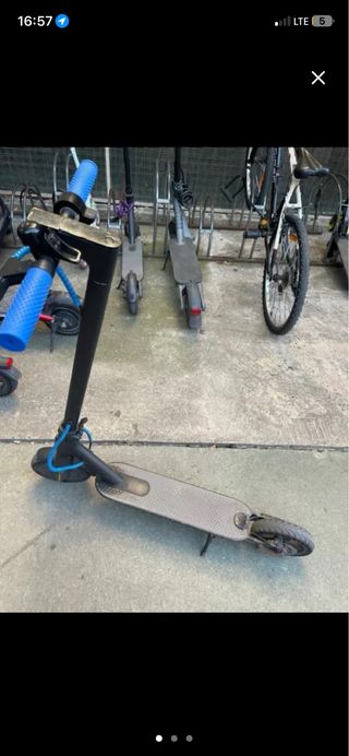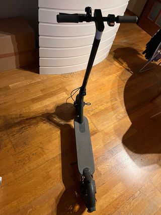 Patinete eléctrico Xiaomi en buen estado. - Color gris. - Manillar con agarres texturizados, bastante desgastados. - Rueda delantera y trasera, macizas. - Plataforma para los pies. - Bateria con autonomia de 10km