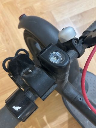 Patinete eléctrico en muy buenas condiciones. - Color blanco y gris. - Puños texturizados para mejor agarre. - Incluye timbre y luz delantera. - Se regala casco y rueda recambio