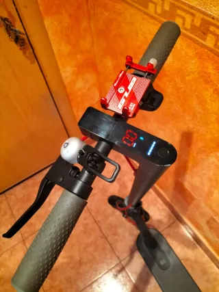 Patinete eléctrico Xiaomi Scooter 2 en muy buen estado. Pocos kilómetros. Sin trucar. Revisión pasada. Ruedas en perfecto estado. Frenos revisados. - Modelo: Scooter 2 pro - Marca: Xiaomi - Color: Negro - Ruedas: 8.5 pulgadas - Plegable Extras Agarradera buena y cómoda extra Espejo retrovisor ajustable extra Reflectantes varios en ambos lados como se ve en las fotos (extra) Cargador orignal incluido Adaptador nuevo sin apenas uso para colocar cualquier móvil. Se adapta y sujeta perfectamente. (Extra) Además viene con un paquete de tira de led para instalar en la parte inferior del patinete. Con su batería, cables, y bolsa. 500km
