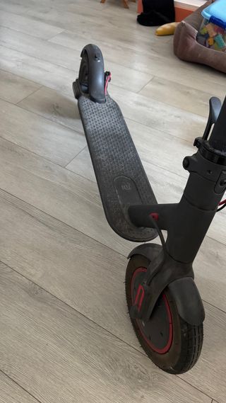 Patinete eléctrico Xiaomi Mi Electric Scooter Pro. - Diseño plegable para fácil transporte. - Plataforma antideslizante. Muy poco uso, ruedas de ¿10? Pulgadas casi sin uso. Como pega, cuando me cambiaron las ruedas debió de quedarse un poco suelto el guardabarros delantero y parece que roza un poco con la rueda, aunque no creo que sea difícil solucionarlo. De ahí el precio