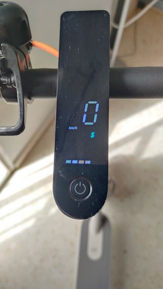 Patinete eléctrico Xiaomi con manillar y pantalla digital. Estado: Usado pero le faltan los dos reflectores traseros, incluye cargador y se regala rueda de repuesto. - Manillar con puños texturizados. - Freno de mano. - Pantalla LED. - Botón de encendido/apagado.