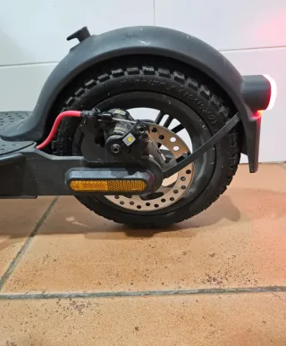 Patinete eléctrico Xiaomi M365 en color negro. - Diseño plegable para facilitar su transporte. - Manillar con empuñaduras texturizadas. - Freno de mano. - Rueda trasera con guardabarros. Incluye dos neumáticos nuevos de repuesto originales. Muy buen estado.