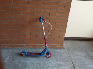 Patinete de tres ruedas con diseño infantil. - Color azul con detalles rojos. - Plataforma antideslizante. - Manillar ajustable en altura.