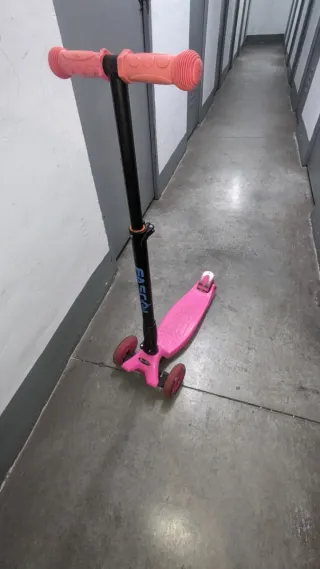 Patinete de tres ruedas en color rosa. - Ruedas con luces. - Manillar ajustable.