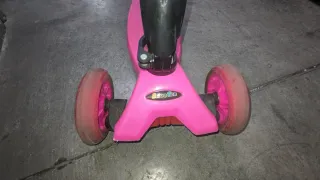 Patinete de tres ruedas en color morado. - Manillar ajustable. - Plataforma ancha para mayor estabilidad. - Ruedas de goma. - Hasta 70 kilogramos. - Marca Micro. - Comprado en Dideco.