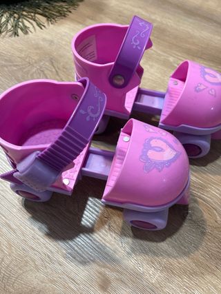 - Patines rosa talla 35. - Modelo: RS QUAD 100 PINK de Decathlon. - Usados solo un curso escolar. - Muy nuevos. - Vendo por quedarse pequeños. - Regalo funda de transporte fucsia (esta bastante usada, con algún roce, pero se puede utilizar aún y más si se pone algún parche)