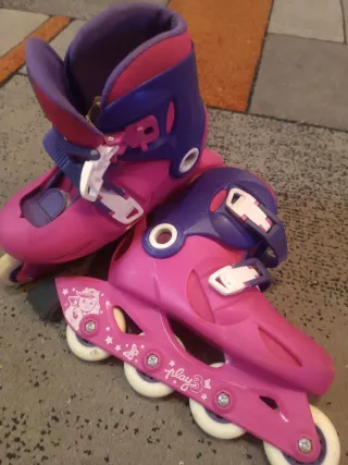 Patines en línea rosas para niños, ajustables de la talla 30 a la 33. - Modelo: ILS PLAY3 pink. - Norma de seguridad: EN13843. - Peso máximo: 60 Kg / 132 lb. - Tallas EU: 30, 31, 32. - Tallas US: 12, 12.5, 13.5. - Tallas UK: 11.5, 12, 13. - Medida CM: 19, 19.5, 20.