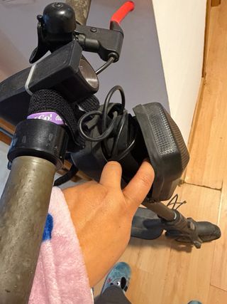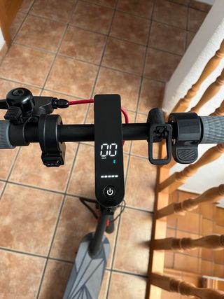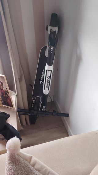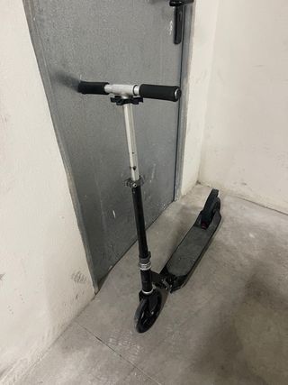 Patinete eléctrico en buen estado, ideal para desplazamientos urbanos. Su diseño es moderno y funcional. - Color negro. - Ruedas cambiadas (son maciza) - Manillar ajustable. Tiene una pequeña rotura en el plástico trasero.
