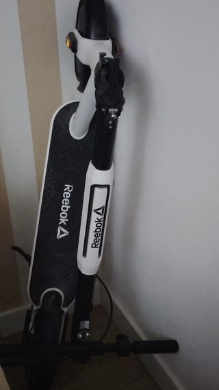 Patinete eléctrico de la marca Reebok, ideal para desplazamientos urbanos. Su diseño es moderno y funcional. - Color principal negro con detalles blancos. - Manillar ajustable. - Plataforma antideslizante. Como nuevo para seguir estrenando con manual cargardor