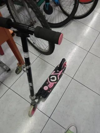 Patinete con un diseño divertido en color rosa y negro, ideal para los más pequeños. - Manillar ajustable. - Ruedas con luces. - Plataforma antideslizante.