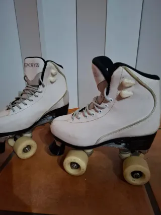 Muy poco usados. Se venden patines de la marca Amaya en color blanco. Ideales para iniciarse en el patinaje. - Diseño clásico. - Cierre con cordones. - Ruedas de color crema.