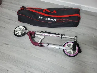 Patinete de la marca Hudora. - Color burdeos y plateado. - Ruedas grandes para mayor comodidad. - Plegable para facilitar su transporte. Con bolso