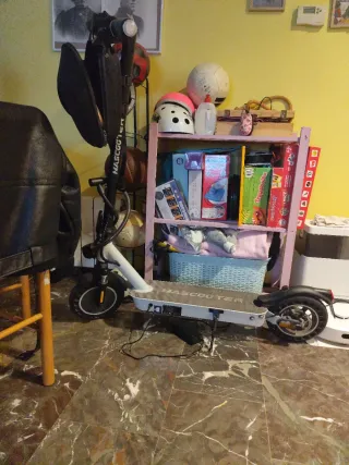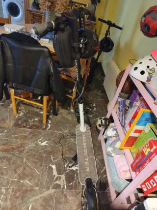 Patinete eléctrico Microgo de color blanco. Sinceramente, no tengo ni idea de patinetes. Se lo dejó mi ex ya que no podía llevárselo de vuelta a Italia en el avión y han pasado 2 años sin reclamarlo, yo no lo he usado nunca para nada (mi ex sí, como se puede ver) y solo ocupa sitio en el garaje. 3 niveles de potencia, freno delantero y eléctrico. Funciona, pero la batería no carga correctamente (no sé si es la batería o el cargador). Se vende pues, tal cual, el reemplazo o reparación iría a cargo del comprador. Incluyo el cargador y un casco de la talla M. Entrega en mano, zona de Tarragona, Reus, Salou, Cambrils... No hago envíos.